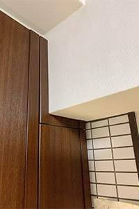 ・既設のキッチンの吊戸棚は、向かって右端にある梁の高さにあわせる為に低い物が設置されていました。そこで梁下から高さ50cmの物を設置し、吊戸棚の低さを解消しました。